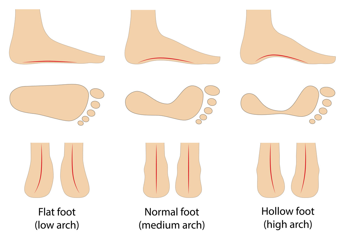 - Characteristics: Very pronounced curve along the inside of the foot; a large gap between the ground and the arch when standing.